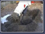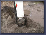 Die Schaufelfräse stabilisiert den Fräsvorgang. Leitungs- und Kanalgräben werden konturengenau ca. 0,50 m breit und bis 1,25 m tief ohne Auflockerung der Randzonen hergestellt.